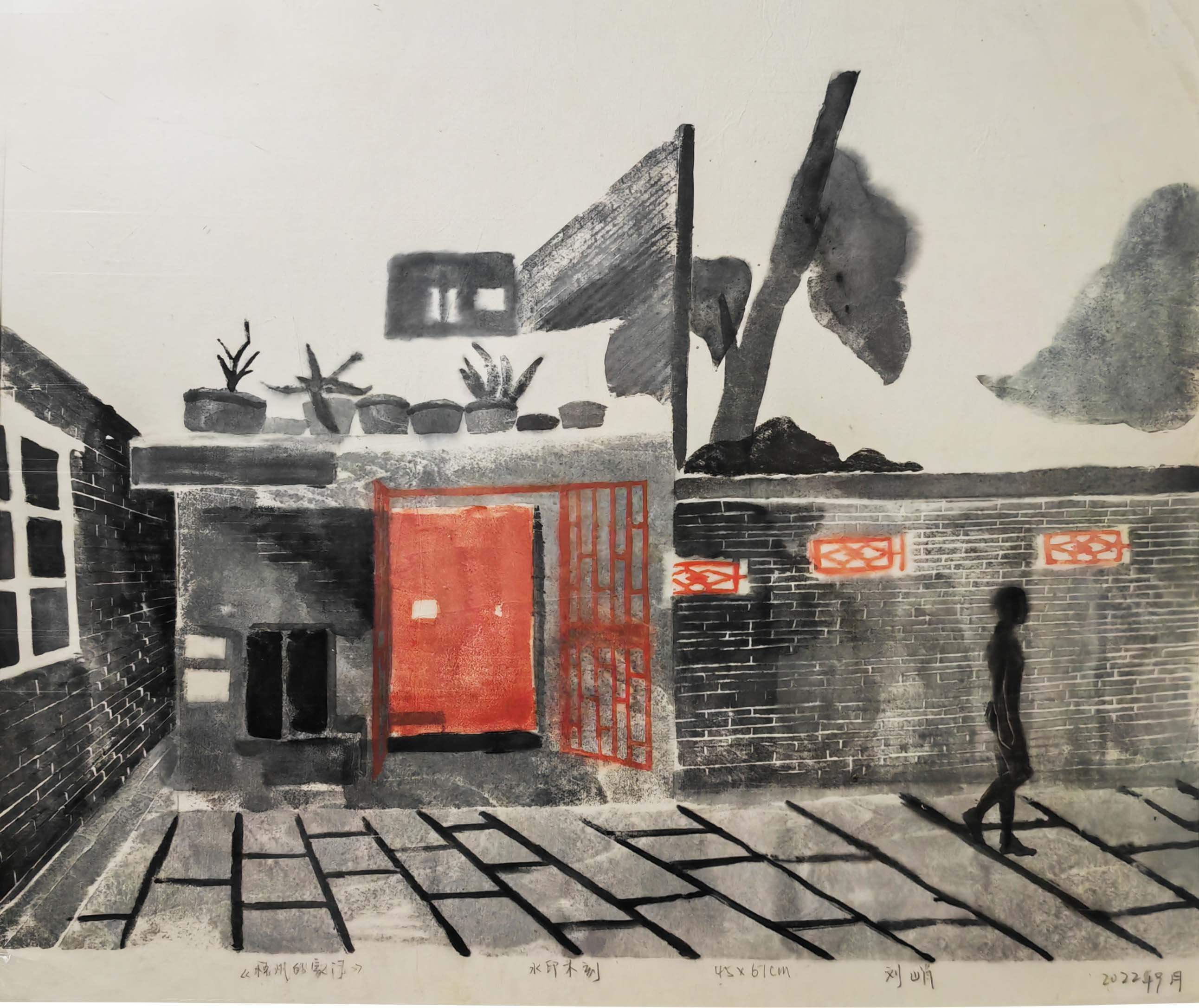 刘峭 版画《记忆的家门》45x67cm