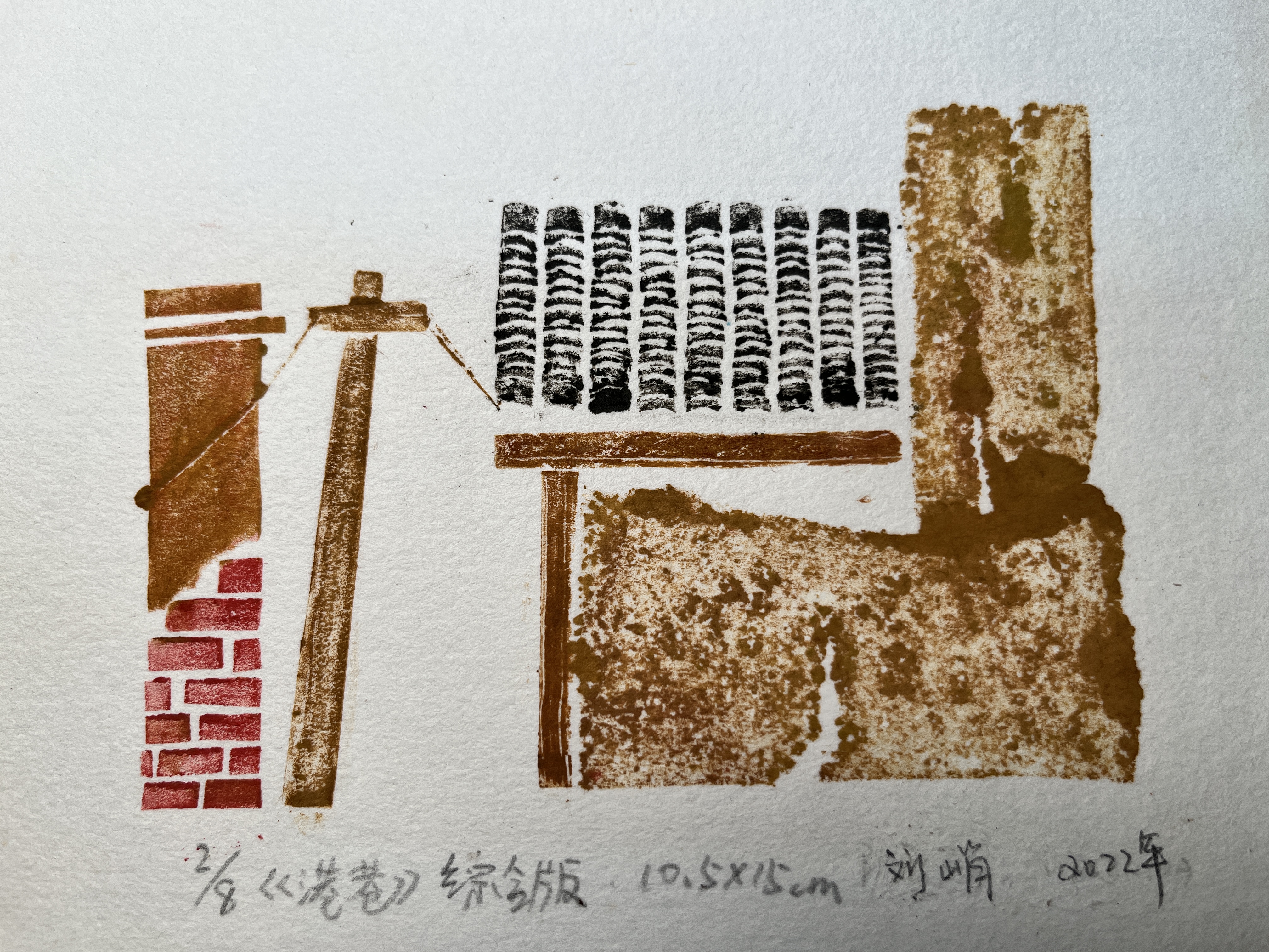 刘峭 版画《记忆的家门》45x67cm